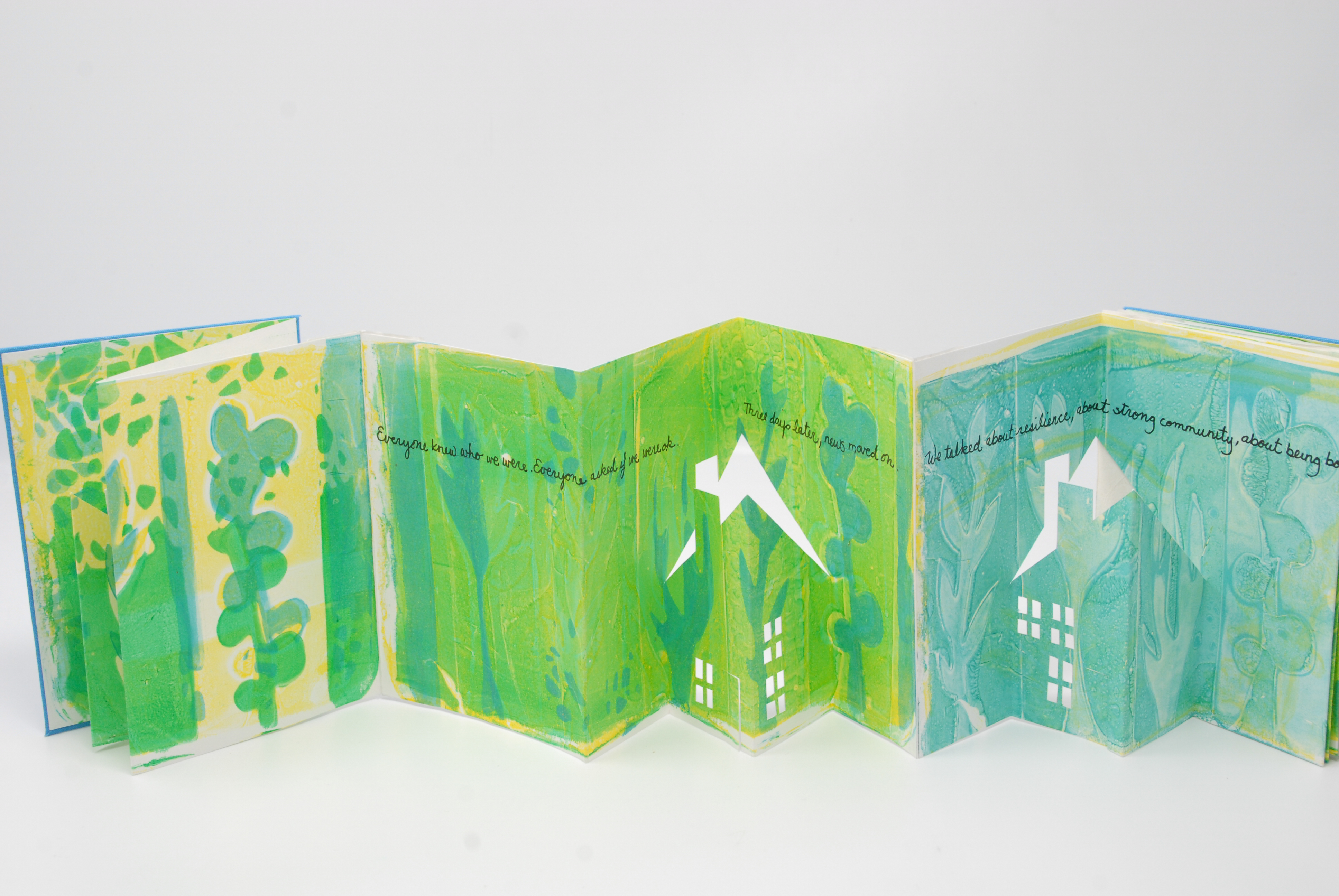 linoleum prints, hand-colored, Jacob's Ladder accordion